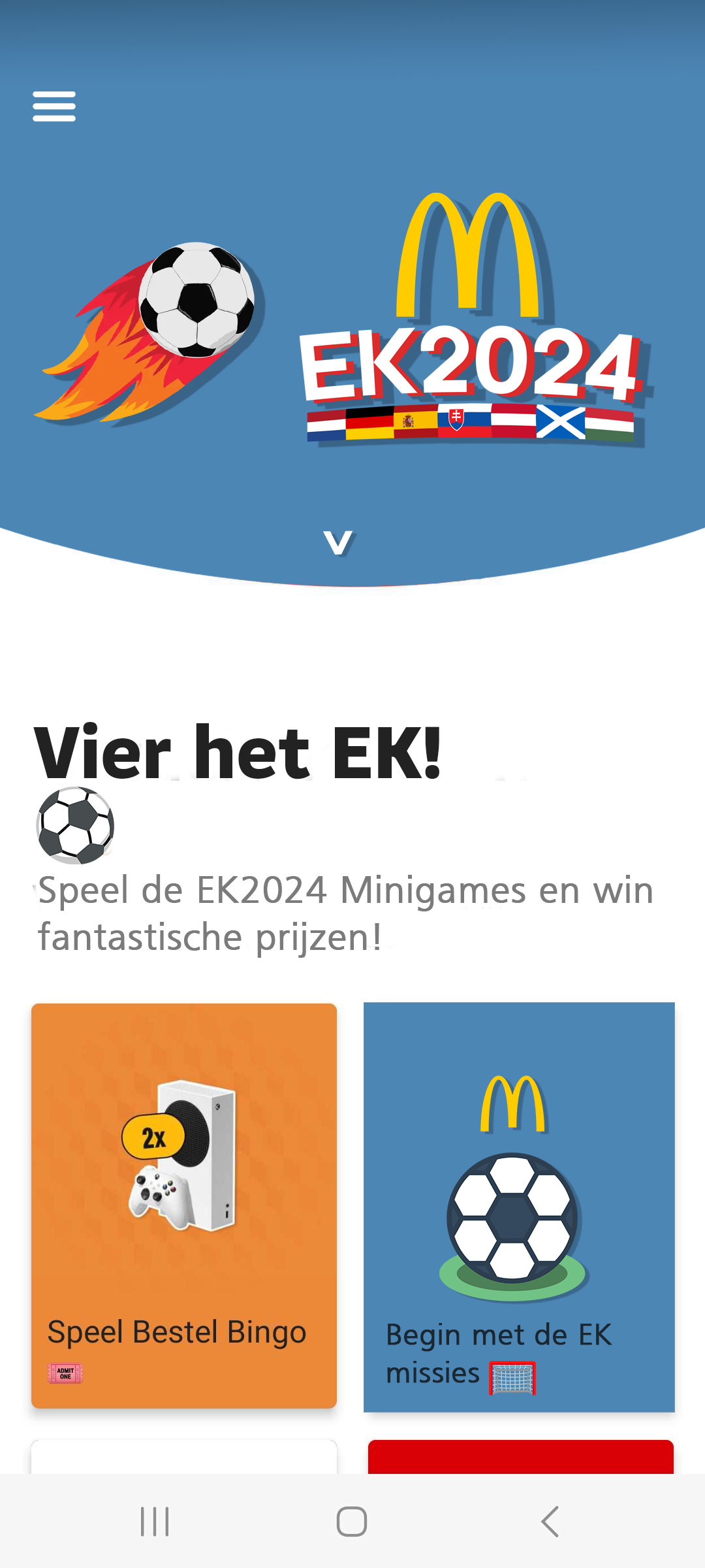 Vervolgens heb ik een design gemaakt voor onze McDonald’s app homepagina wat een bijgevuld design is van de daadwerkelijke homepagina van de McDonald’s app. Zodra onze campagne vanuit deze homepagina wordt geklikt kom je in een laadscherm die je leidt naar de pagina van de EK2024 campagne. Zodra je vanuit hier op ‘START JE AVONTUUR’ klikt, kom je uit op de speelwereld in de app (zie EK2024 App designproces).